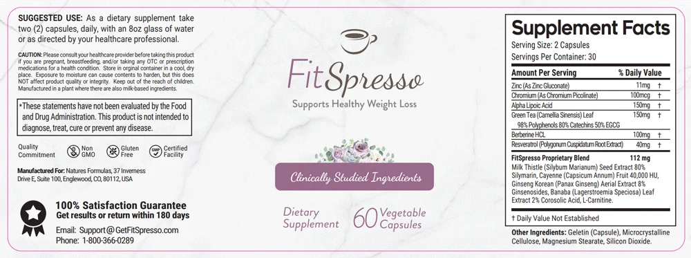 Every FitSpresso purchase is backed by a 180-day 100% money-back guarantee. If you are not satisfied with your results, simply contact customer service within 180 days of purchase, return the bottles, and receive a full refund—no questions asked.